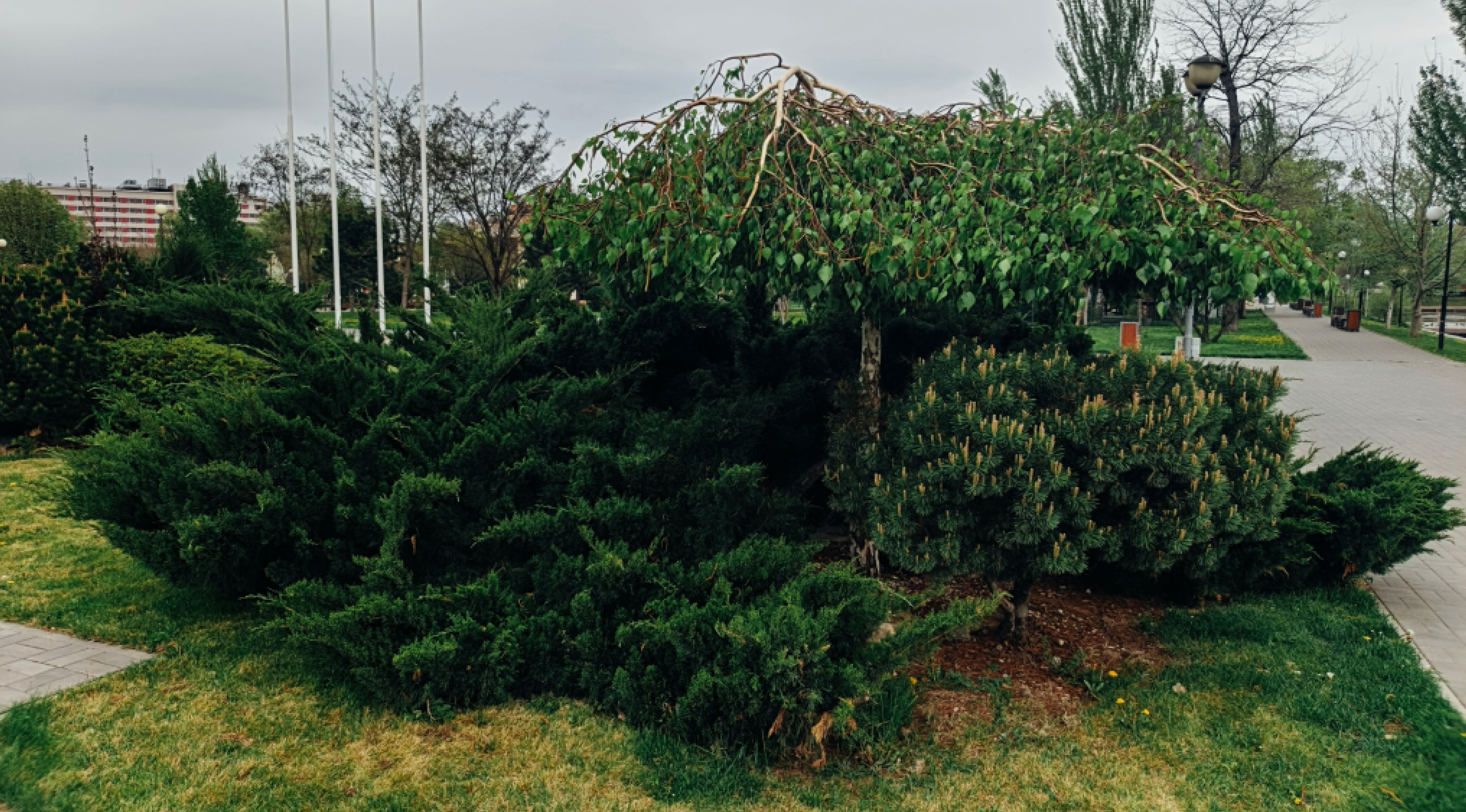 Посадка и пересадка растений, обрезка и формирование крон, подкормка, защита от вредителей, сезонный уход.